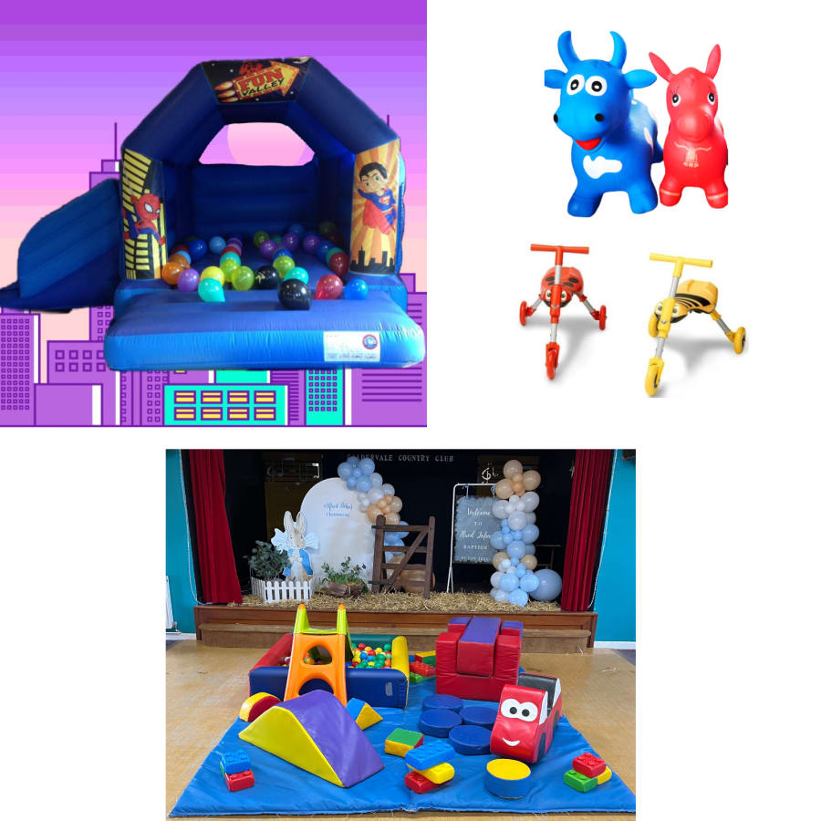 Our inflatables and soft play packages are perfect for indoor set up in village hall, cricket clubs, golf clubs, social clubs or at home. Some of our packages are suitable for outside use.