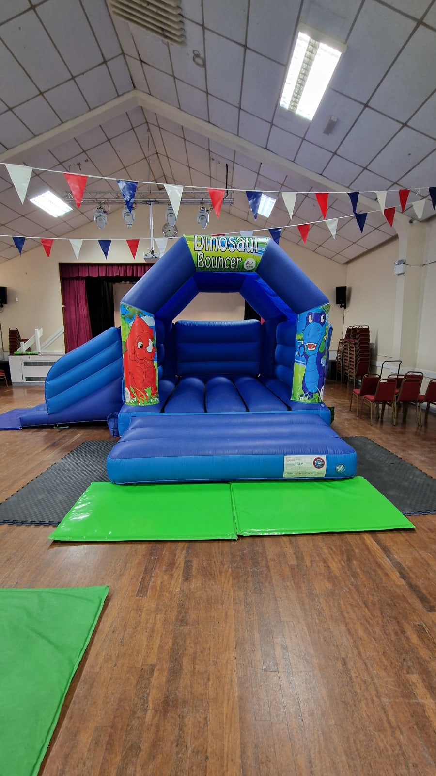 Our Bouncy Castle with slide is suitable for indoor and outdoor hire.